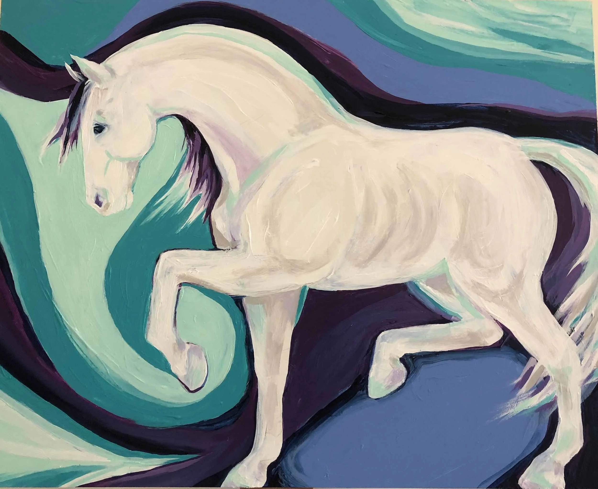 “Narwhal” (6’ by 3’ Acrylic on Canvas) was one of fifteen paintings selected by the curator of the new Palm Beach Airport Exhibition “Artfully Exploring the Palm Beaches.”